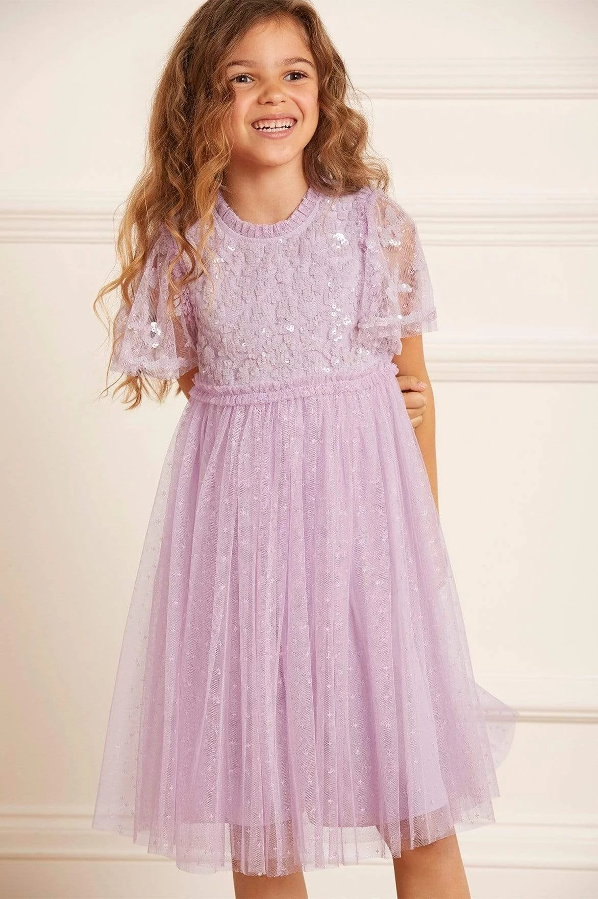 NEW SEASON | The Lilybelle KIDS Dress in Sweet Lavender. This dress is beautifully embellished with tonal sequins scattered across the bodice. An intricately designed style with tulle trims around the neck and waistline, featuring a multi-layered frothy tulle skirt to add elegance. Dress her up in the Lilybelle for any occasion.