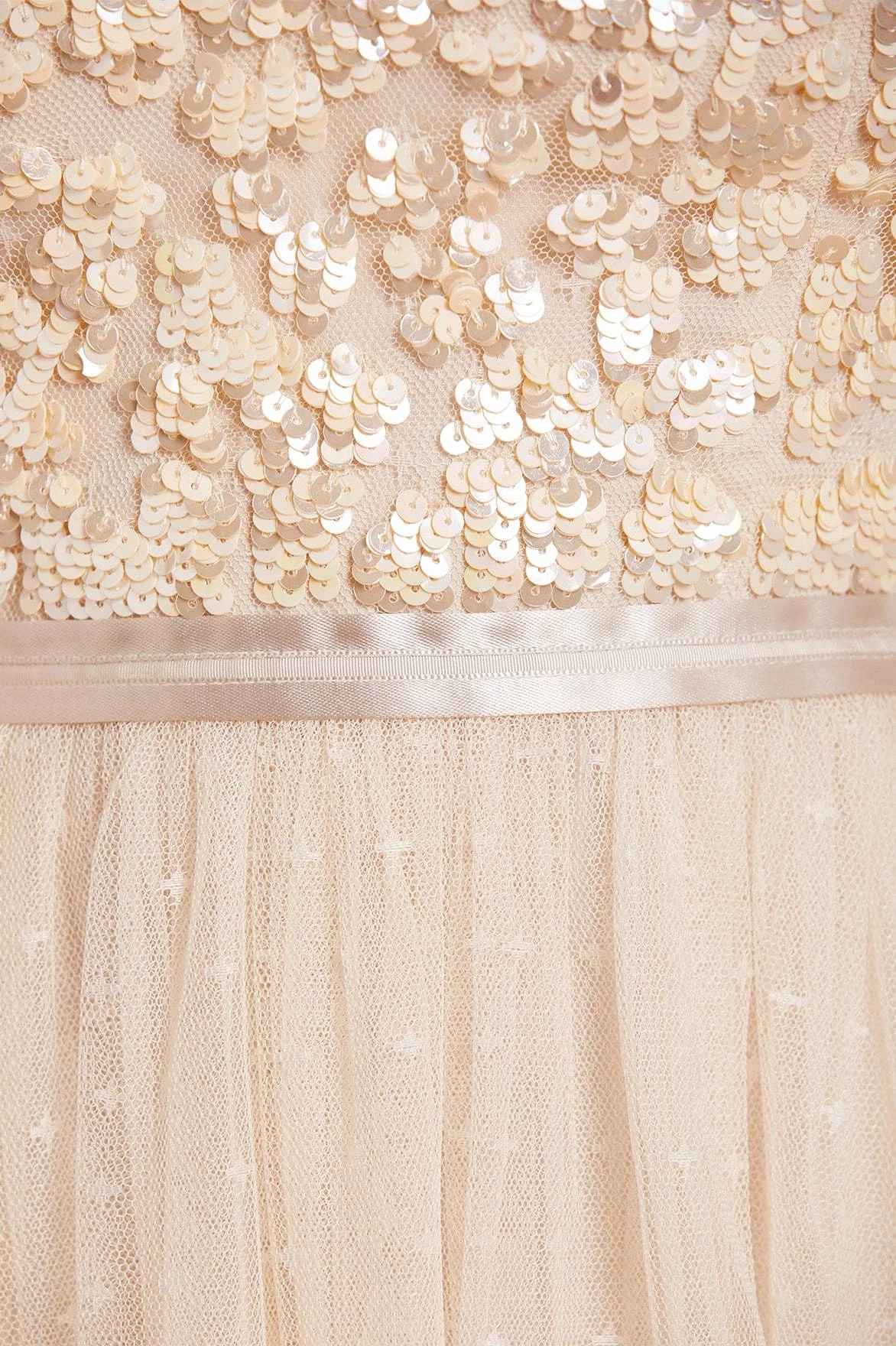 – Tulle decorated with tonal iridescent sequins