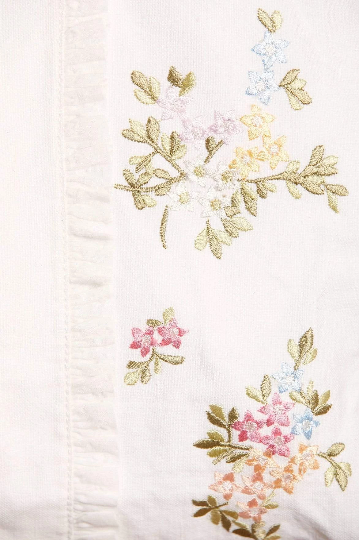 NEW SEASON | NEEDLE & THREAD EXCLUSIVE. The Emma Ditsy Shoulder Bag in Sunset / Multi. This bag is crafted in soft cotton, printed with a floral embroidery in rich, vivid tones, inspired by a vintage-sourced 1930s print. Decorated with playful heart-shaped embroidery, framing each stitch with our signature Needle & Thread frill detailing throughout. Designed with versatile long straps for easy, cross-body wear, as well as shorter handles for easy hold. The perfect everyday cotton bag.