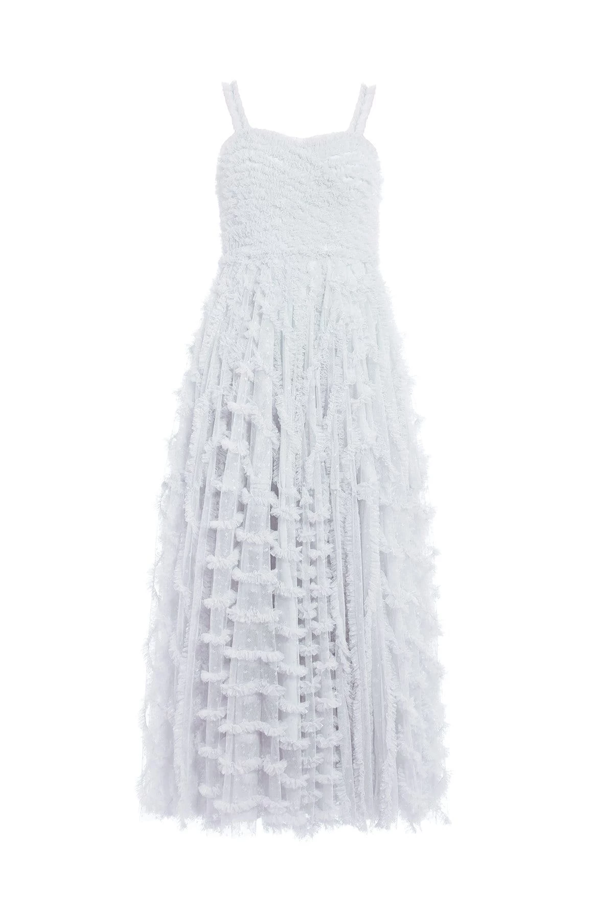 NEEDLE & THREAD EXCLUSIVE. The Florence Cami Ankle Gown in Ice Blue. This statement gown is designed with gentle ruffles throughout, creating a romantic, flattering effect. The skirt of the dress is crafted in circular pieces for dramatic volume and a sweeping hemline. A key piece of the season.