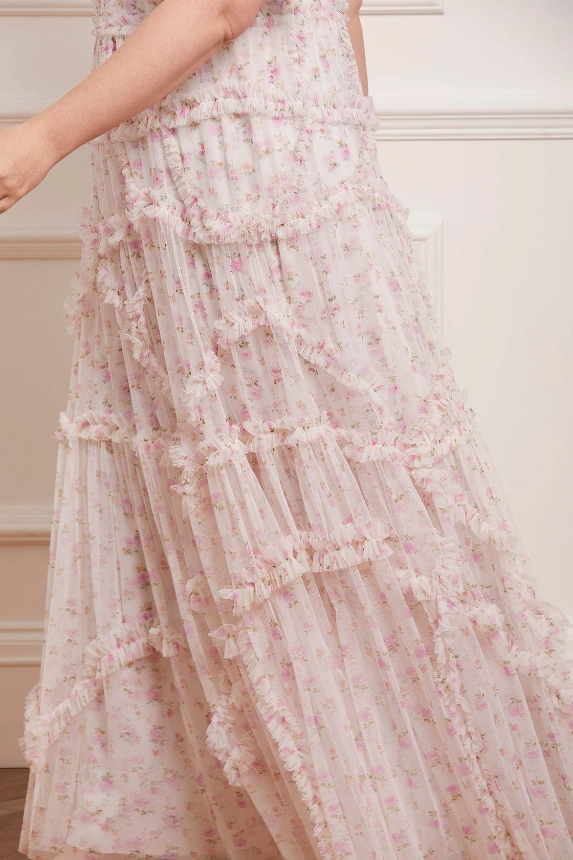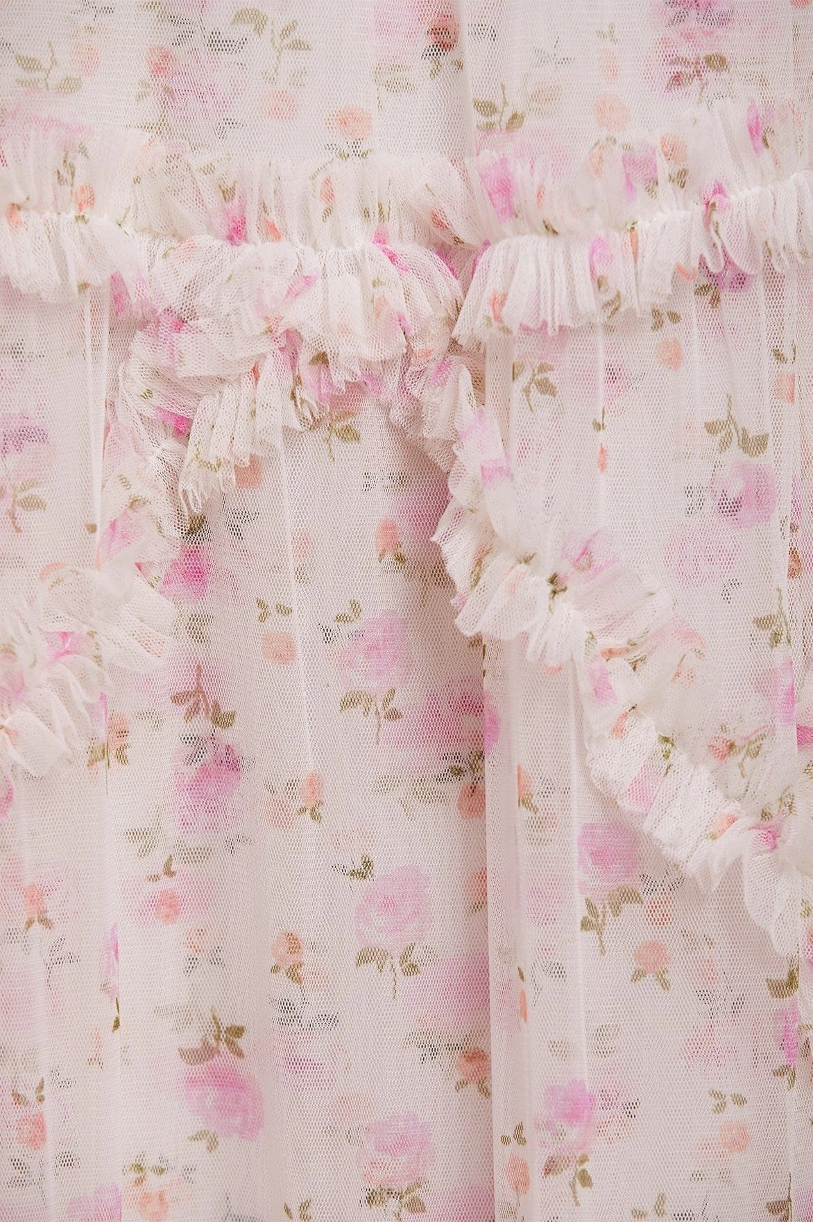 – Floral printed tulle decorated with printed tulle frills